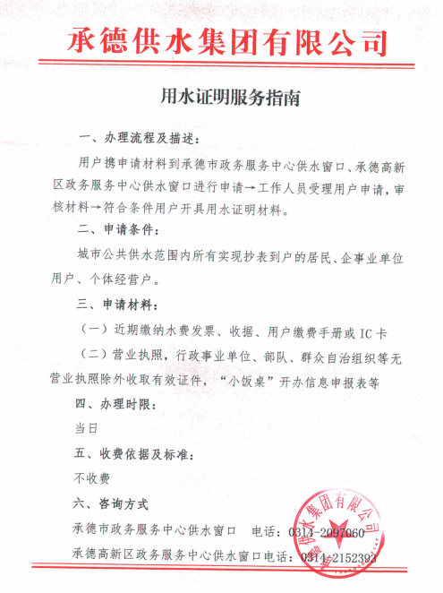 用水證明服務(wù)指南